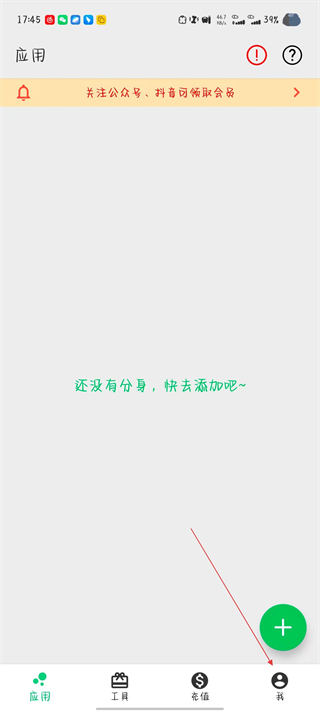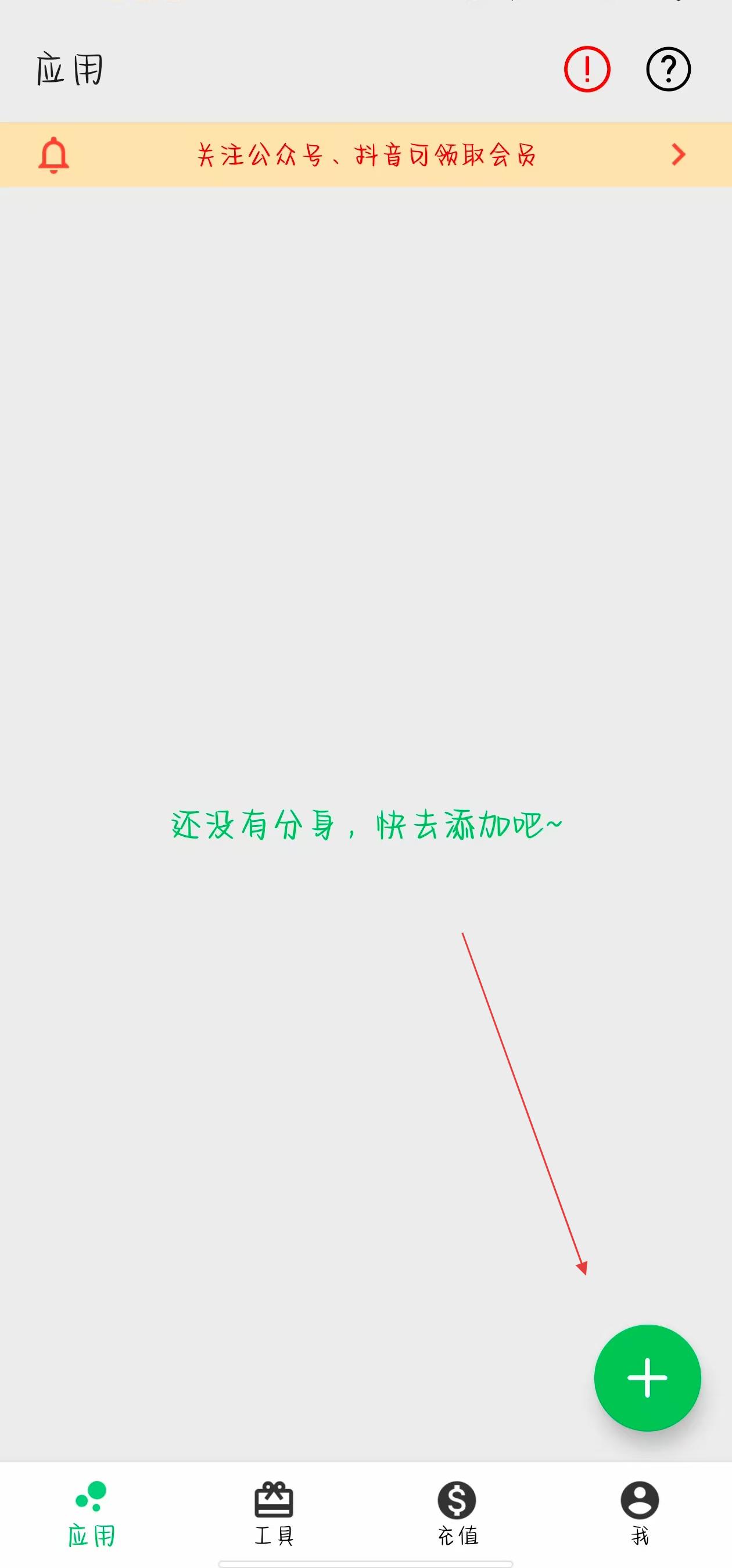 1、打開幻影分身應(yīng)用進(jìn)入主界面,在界面右下角點(diǎn)擊綠色帶有+號(hào)的按鈕,進(jìn)入選擇應(yīng)用的頁(yè)面。