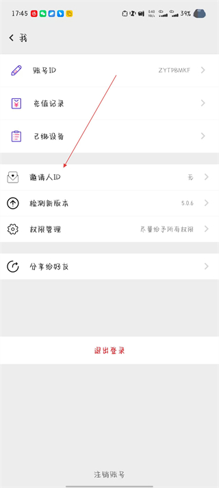3、在設(shè)置界面中,點(diǎn)擊邀請(qǐng)人ID,進(jìn)入填寫邀請(qǐng)碼的頁(yè)面。