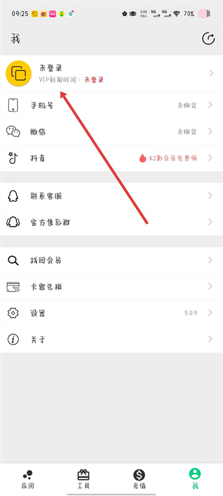 2、進(jìn)入個(gè)人中心頁(yè)面,點(diǎn)擊未登錄區(qū)域進(jìn)入登錄界面。