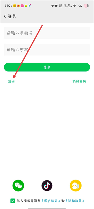3、在登錄界面中找到注冊(cè)選項(xiàng)并點(diǎn)擊,進(jìn)入賬號(hào)注冊(cè)頁(yè)面。