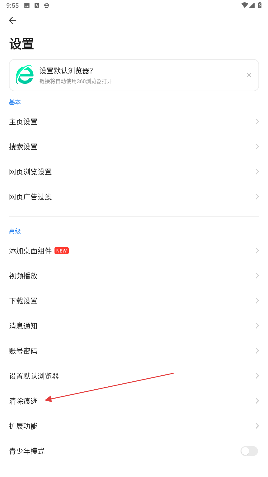 3、在設置的頁面內,找到并點擊清除痕跡的按鈕。