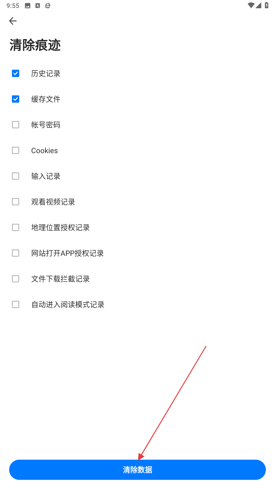 4、在清除痕跡的頁面內,選擇并勾選后再點擊清除數(shù)據(jù)即可。