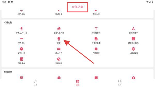 1、在全部功能區(qū)域,找到并點(diǎn)擊錄音的功能圖標(biāo),進(jìn)入錄音編輯界面。