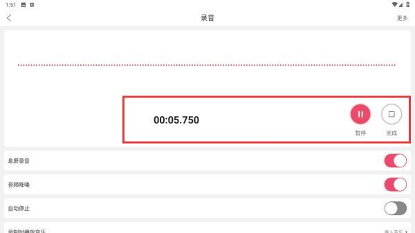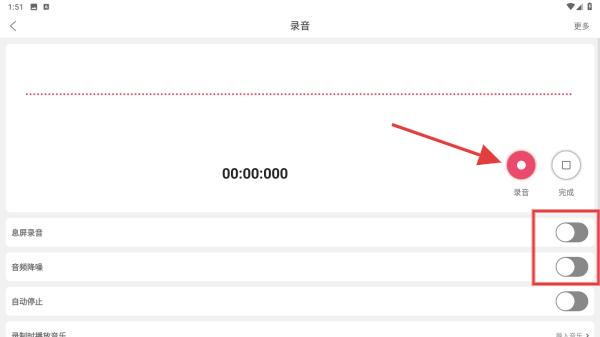 2、在錄音界面的右側(cè),按需開啟以下開關(guān),支持邊錄屏邊錄音、音頻降噪,提升錄音清晰度。