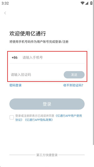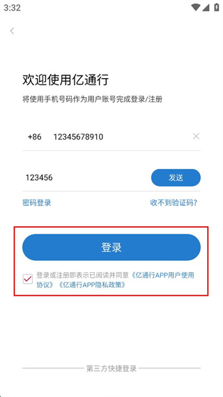 4、勾選登錄或注冊即表示已閱讀并同意相關(guān)協(xié)議,點擊登錄按鈕,完成億通行賬號登錄流程。