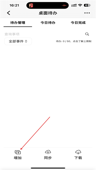 2、在桌面待辦的頁面內(nèi),點擊下方增加的功能按鈕。