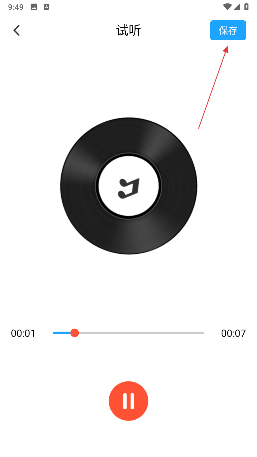 4、音頻提取完成后,進(jìn)入試聽(tīng)頁(yè)面,可先試聽(tīng)提取出的音頻,確認(rèn)無(wú)誤后點(diǎn)擊頁(yè)面右上角的保存按鈕。