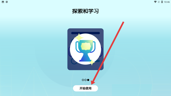 1、在探索和學(xué)習(xí)界面點(diǎn)擊開(kāi)始使用按鈕,進(jìn)入應(yīng)用功能操作頁(yè)面。