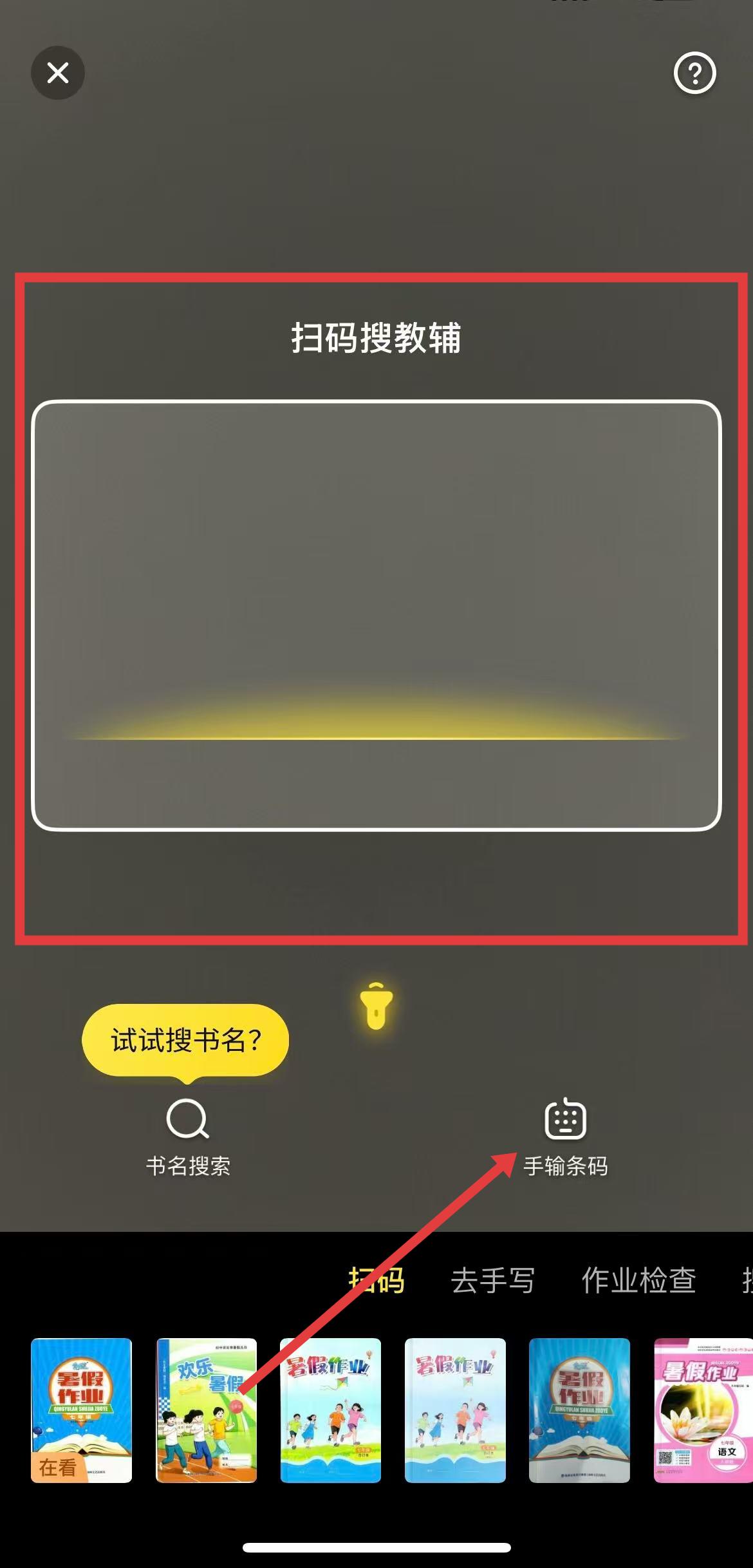 2、進(jìn)入教輔掃碼頁面之后,可以將鏡頭對準(zhǔn)教輔背面的條形碼掃碼或選擇手動輸條碼錄入信息。