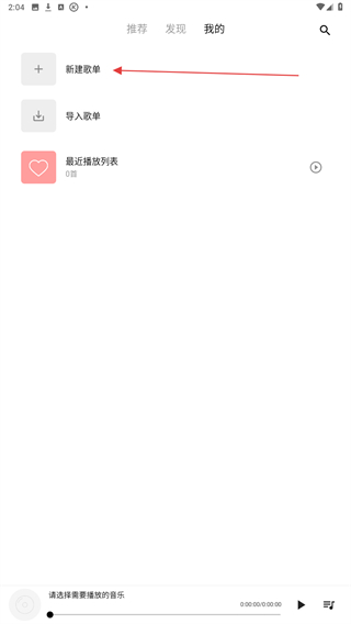 2、進(jìn)入我的頁面內(nèi),用戶需點擊新建歌單的功能按鈕。
