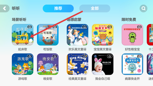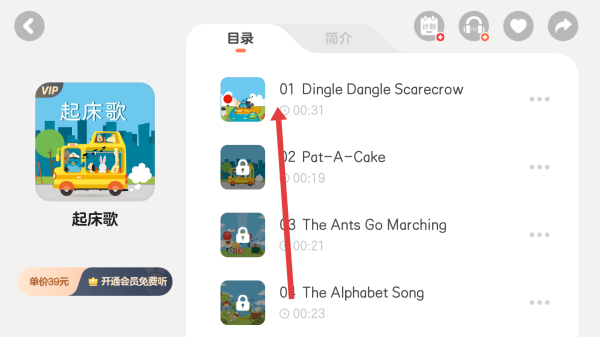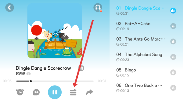 2、在進(jìn)入到起床歌頁面中,可以點(diǎn)擊右側(cè)列表第一個歌曲,進(jìn)入播放。