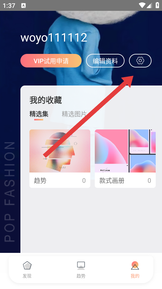 1、打開pop趨勢APP,點擊底部最右邊我的按鈕,進(jìn)入個人的界面。
