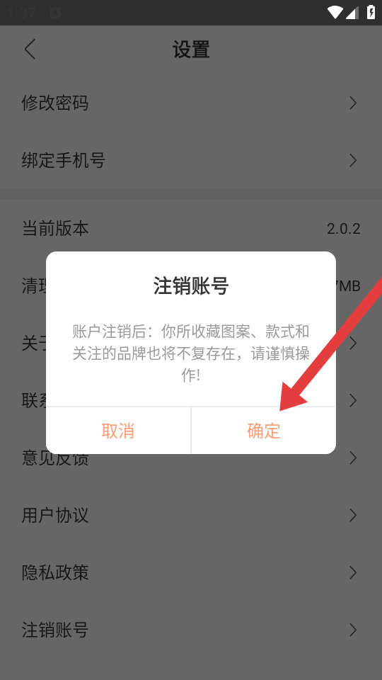 3、在設(shè)置的界面,點擊注銷賬號按鈕,會彈出注銷的確認(rèn)框。