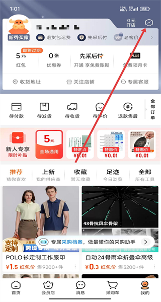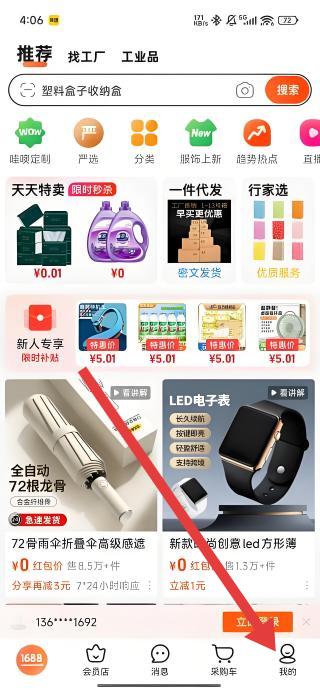 1、在1688首頁通過點(diǎn)擊底部我的圖標(biāo),進(jìn)入個人中心頁面,可查看賬號相關(guān)功能與信息。