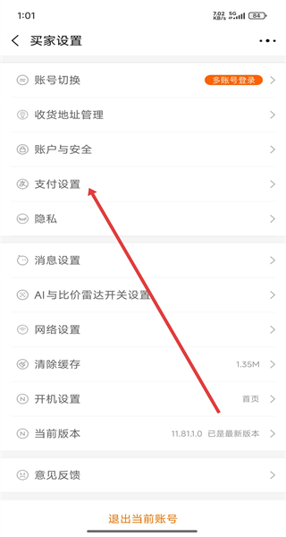 2、買家設(shè)置頁面點(diǎn)擊“支付設(shè)置”,進(jìn)入支付設(shè)置頁面。