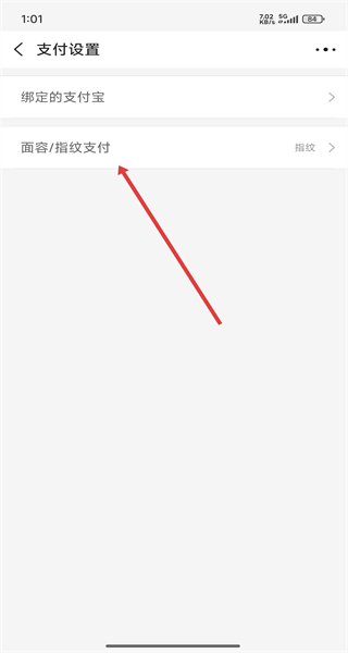 3、支付設(shè)置頁面點(diǎn)擊“面容/指紋支付”,進(jìn)入指紋支付頁面。