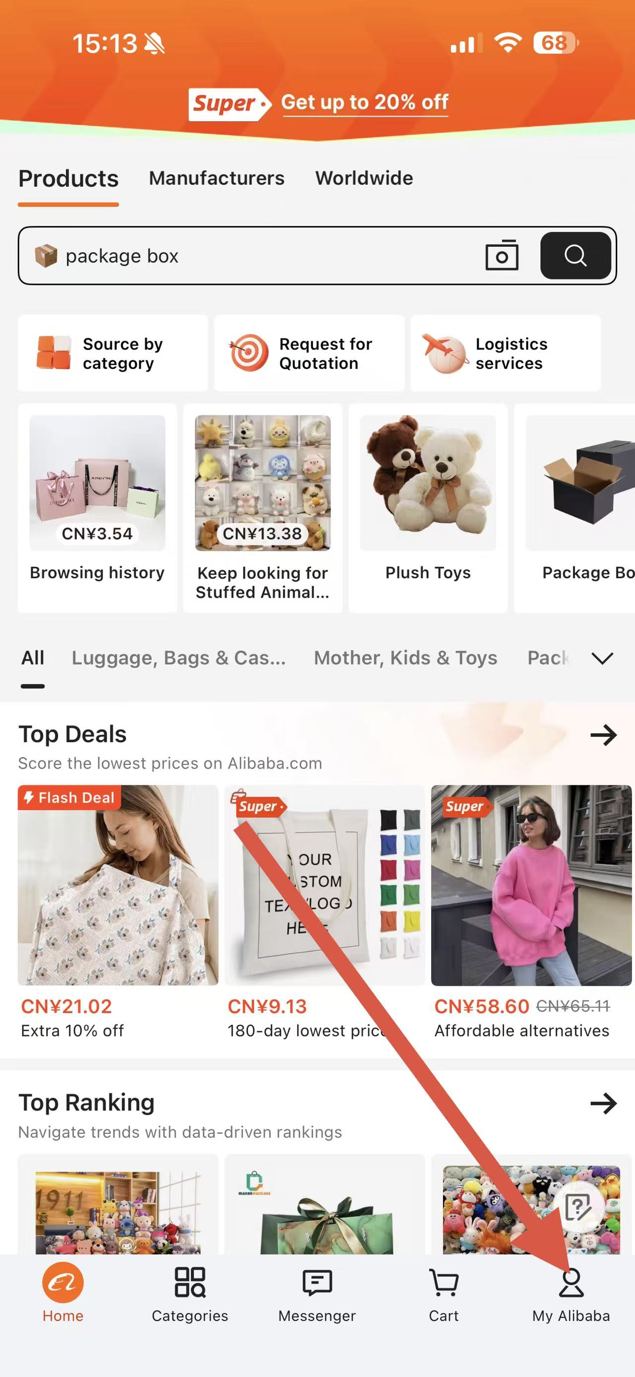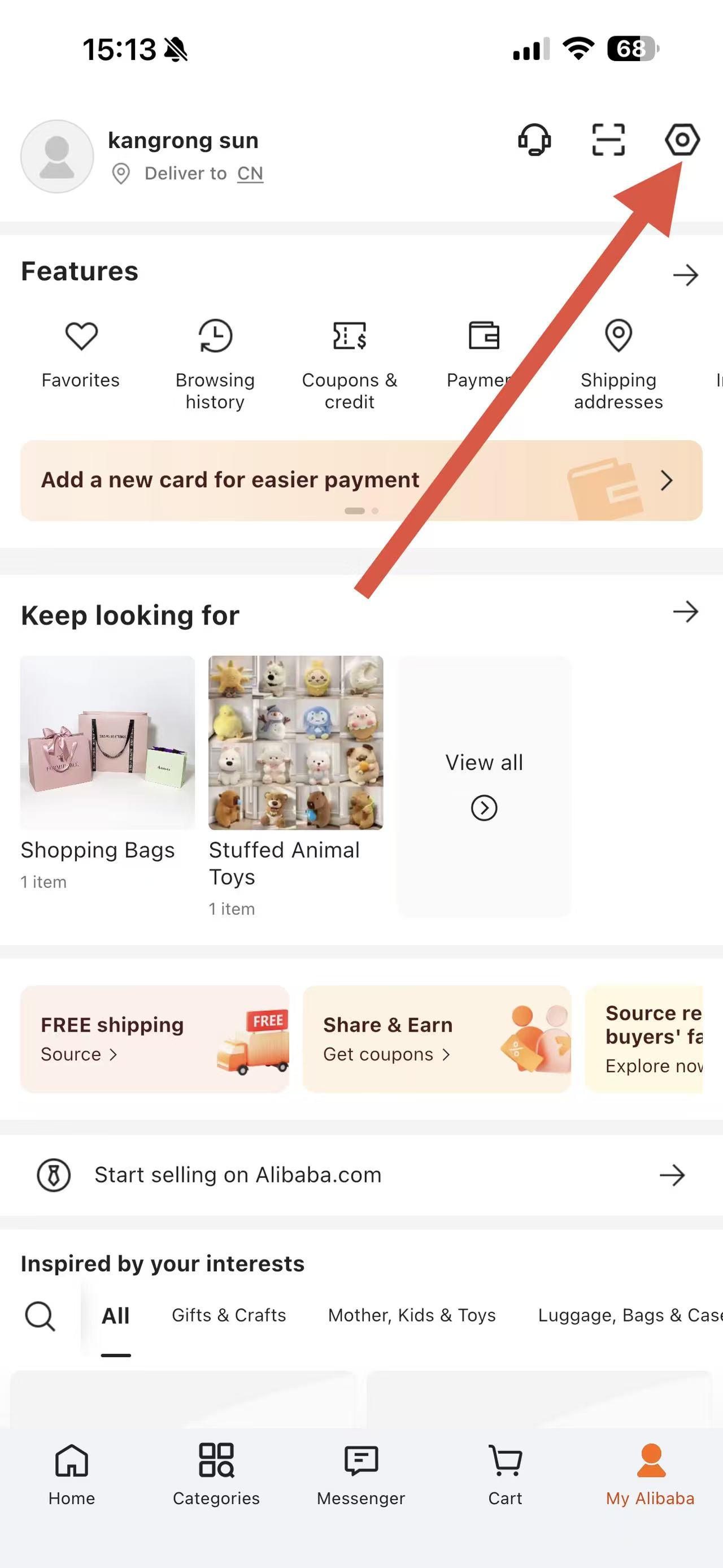 1、打開(kāi)阿里巴巴國(guó)際站APP,點(diǎn)擊底部導(dǎo)航欄中的My Alibaba進(jìn)入個(gè)人頁(yè)面。
