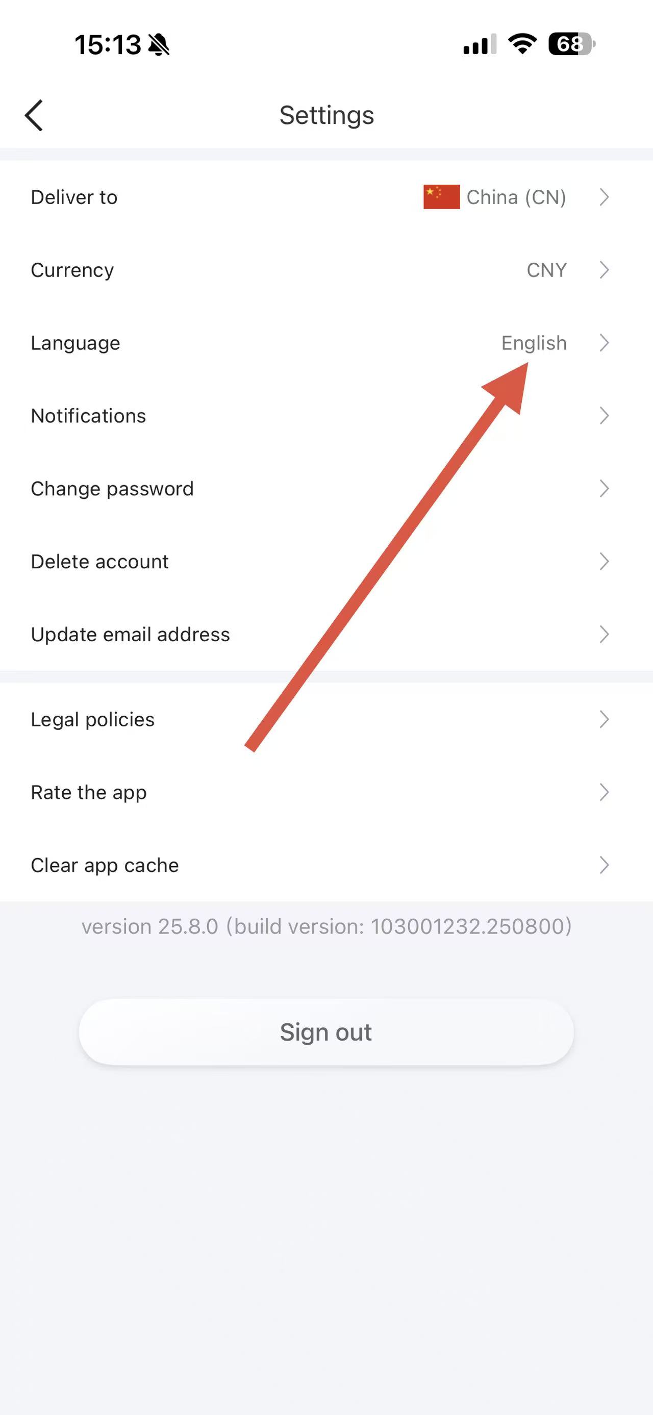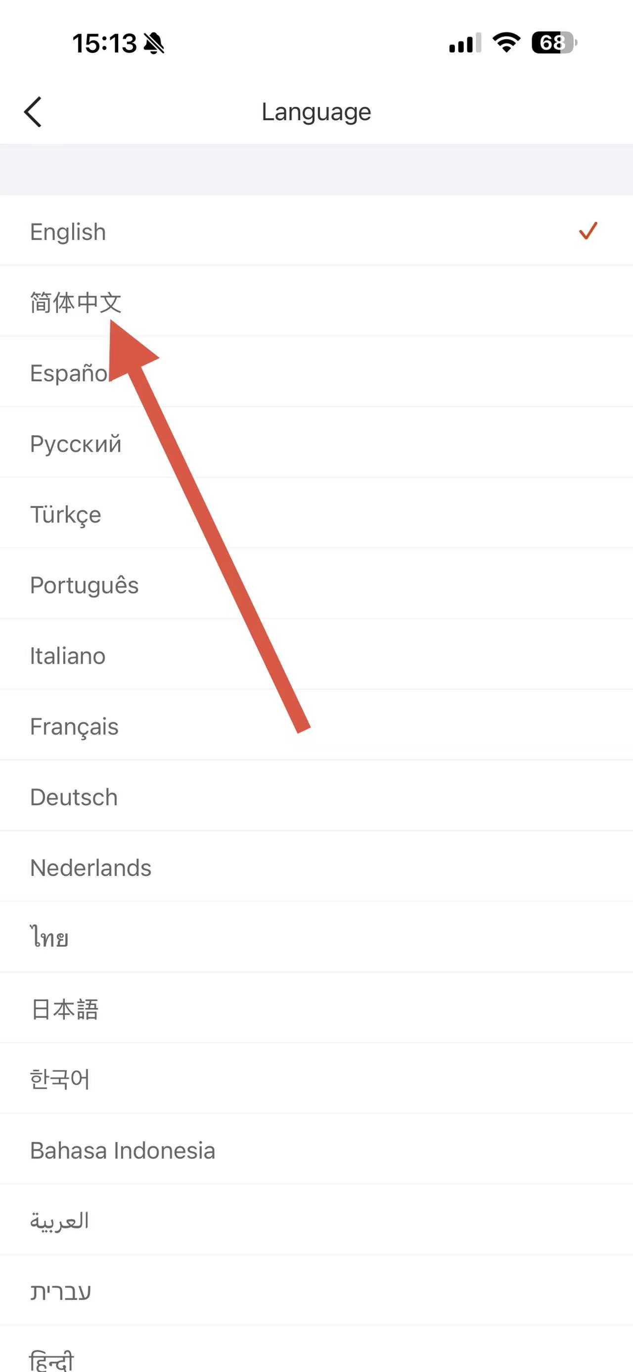 4、在Language語(yǔ)言選擇頁(yè)面,找到并點(diǎn)擊簡(jiǎn)體中文,即可將APP設(shè)置為中文版。