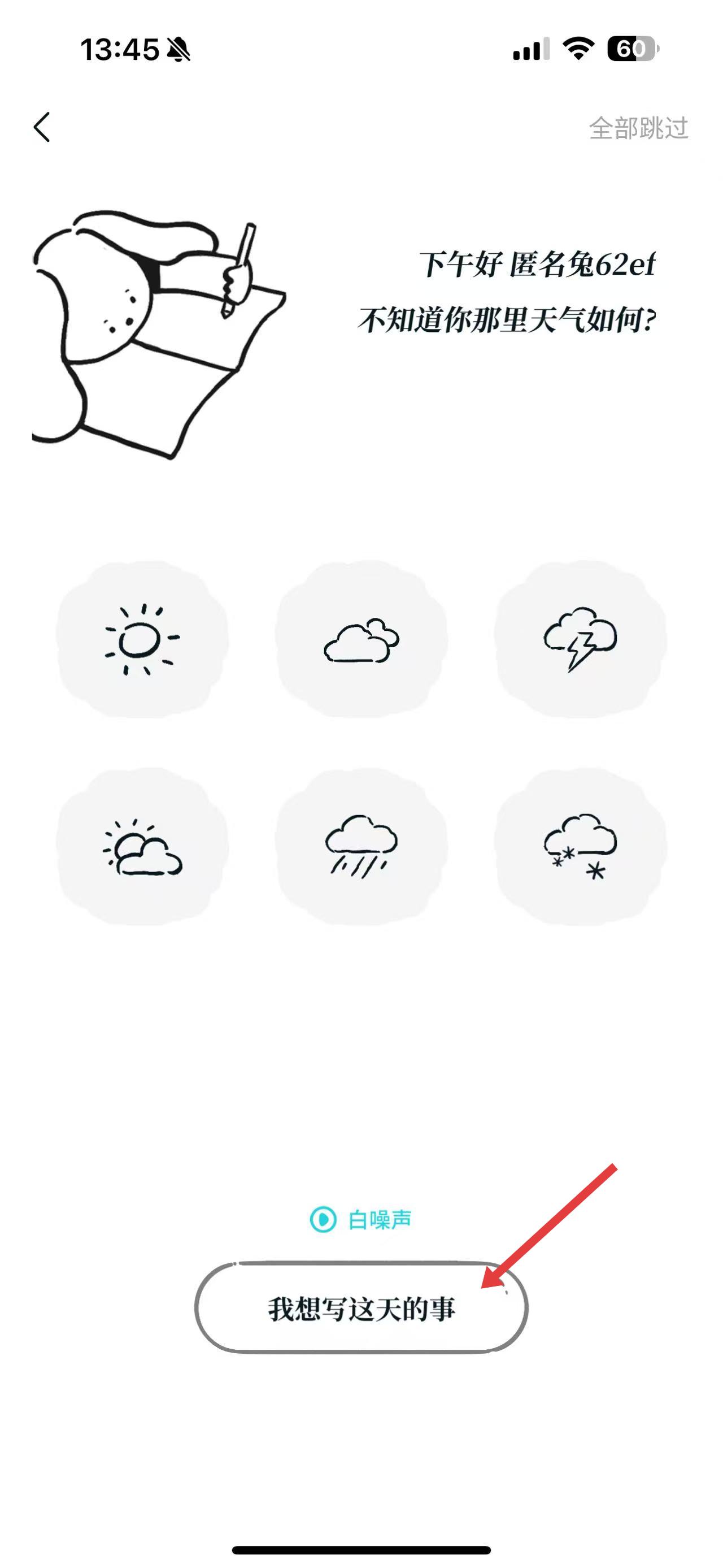 3、在記錄引導(dǎo)頁(yè)面,點(diǎn)擊我想寫(xiě)這天的事按鈕,進(jìn)入日記編輯頁(yè)面。