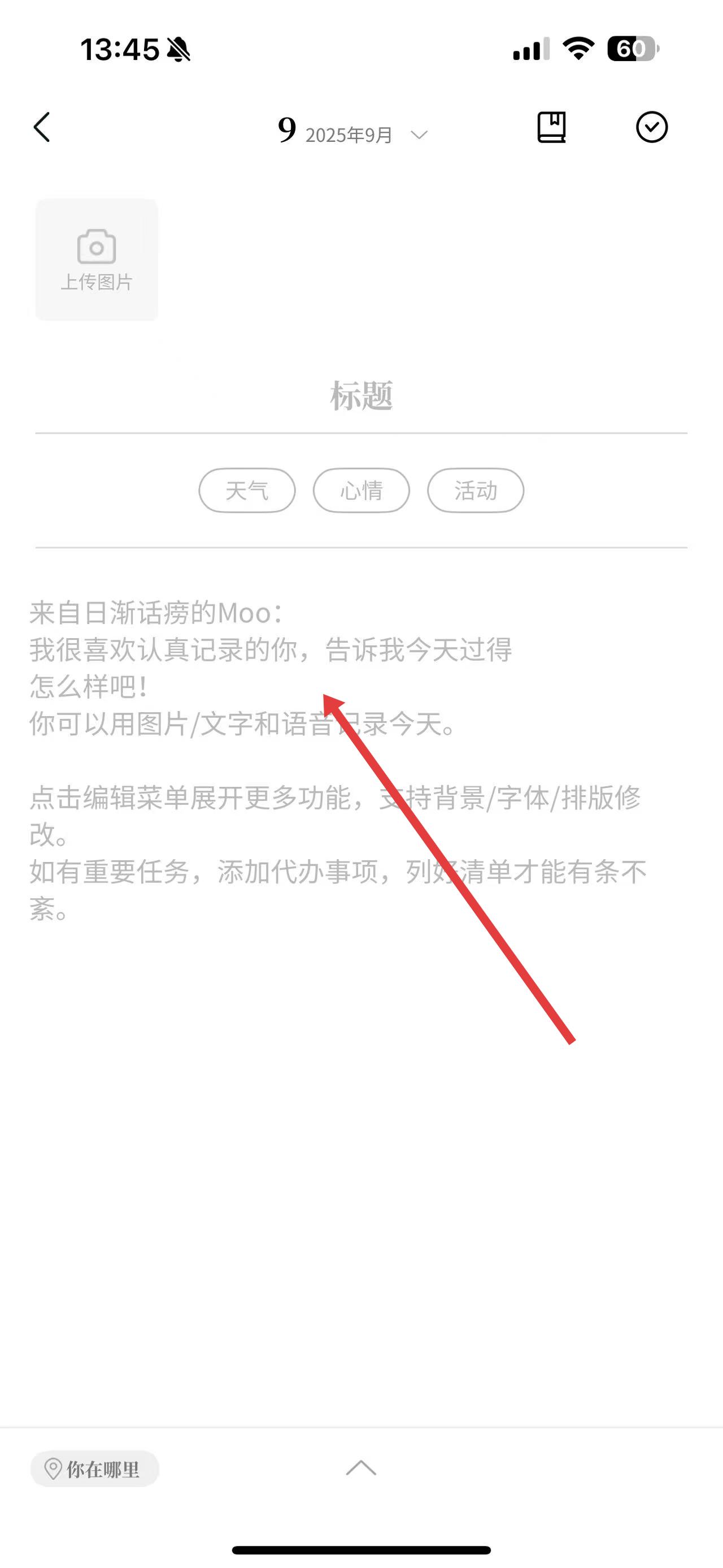 4、在日記編輯頁(yè)面,在正文區(qū)域用圖片、文字或語(yǔ)音記錄當(dāng)天的事情,即可完成日記撰寫(xiě)。