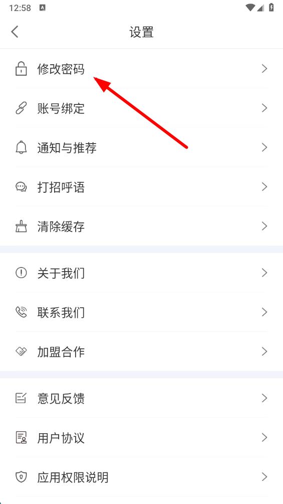 3、在設置界面中,找到并點擊修改密碼選項,進入修改密碼頁面。