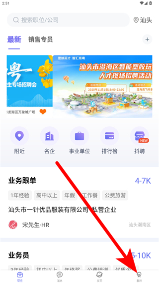 1、打開百城招聘APP,點擊右下角我的,進入個人頁面。