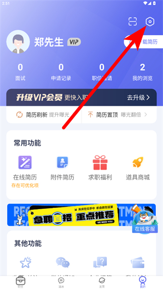 2、在個人中心頁面右上角,點擊設置圖標,進入設置界面。