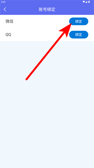 4、在賬號綁定頁面,點擊微信右側的綁定按鈕,完成微信綁定。