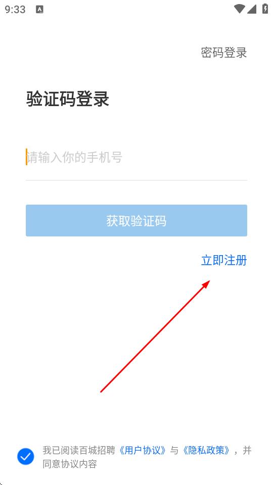 2、在登錄頁面,點擊立即注冊選項。