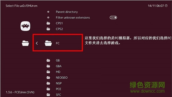 14、點(diǎn)擊進(jìn)入之后使用十字鍵上下按鍵,選擇EMUrom文件夾