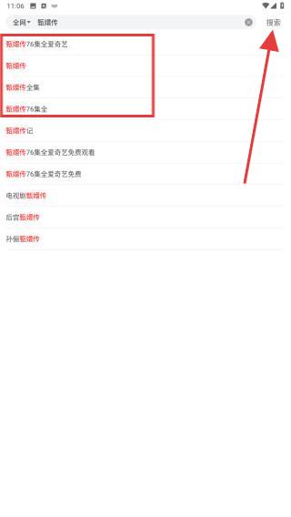 2、直接填寫片名/創(chuàng)作者/演員名,輸入時,系統(tǒng)會自動彈出聯(lián)想詞推薦,點擊聯(lián)想詞可快速觸發(fā)搜索,簡化操作。