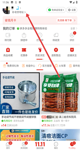 2、在個(gè)人中心頁(yè)面點(diǎn)擊“收貨地址”,進(jìn)入收貨地址管理界面。