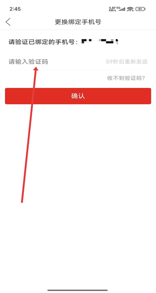 3、在驗(yàn)證頁(yè)面輸入已綁定手機(jī)號(hào)的驗(yàn)證碼,點(diǎn)擊“確認(rèn)”,進(jìn)入新手機(jī)號(hào)輸入頁(yè)面。