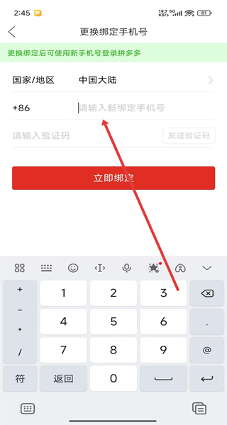 4、在新手機(jī)號(hào)輸入頁(yè)面輸入新的手機(jī)號(hào),點(diǎn)擊“發(fā)送驗(yàn)證碼”,輸入收到的驗(yàn)證碼后點(diǎn)擊“立即綁定”,完成手機(jī)號(hào)的更換綁定操作。