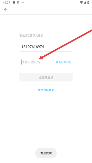 4、在獲取到驗證碼后,點擊輸入框填寫進(jìn)去,隨即完成驗證登錄操作。