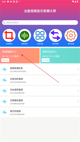 1、打開APP,進(jìn)入首頁(yè)點(diǎn)擊視頻編輯中心的按鈕。