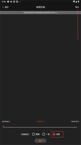 4、進(jìn)入壓縮的頁(yè)面內(nèi),選擇清晰度后再點(diǎn)擊導(dǎo)出即可完成。