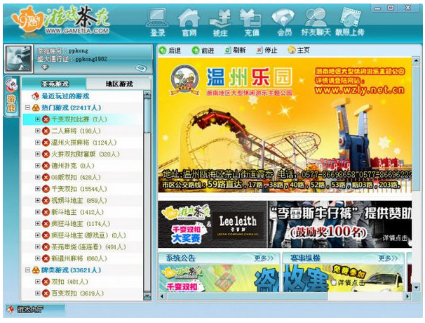 游戲茶苑是盛大旗下的特色棋牌游戲平臺(tái),從溫州出發(fā),以經(jīng)典雙扣系列為起點(diǎn),接連為廣大休閑游戲愛好者打造了多款頗具人氣的精品佳作。一場游戲一壺茶的游戲理念,讓用戶在休閑娛樂的同時(shí)陶冶人生,修身養(yǎng)性。游戲茶苑開發(fā)并運(yùn)營的各類棋牌游戲已逾百款,品種涉及牌類、麻將、棋類、休閑游戲、網(wǎng)游、桌游、手機(jī)游戲等。