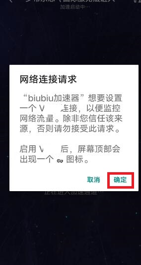 3、緊接著加速器就需要?jiǎng)?chuàng)建一個(gè)【ip】然后點(diǎn)擊【確定】就可以完成加速器設(shè)置,啟動(dòng)手機(jī)中的游戲;
