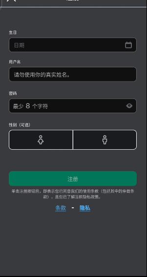 3、注冊(cè)時(shí)第一欄為生日,第二欄為用戶(hù)名(只包含數(shù)字、字母及下劃線(xiàn);3-20個(gè)字符內(nèi)),第三欄為密碼 (8個(gè)字符以上,不可與用戶(hù)名相同)