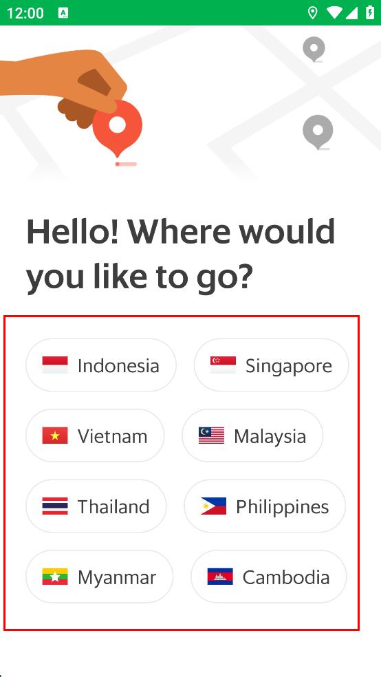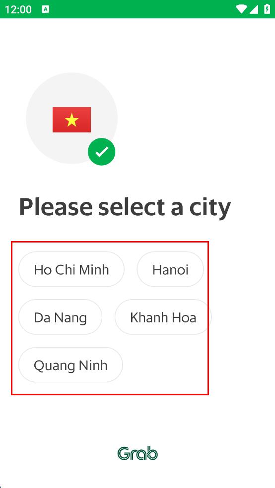 1、打開Grab APP,進(jìn)入選擇目的地國家頁面,有印度尼西亞、新加坡等多個國家選項(xiàng),選擇越南,進(jìn)入選擇城市頁面。