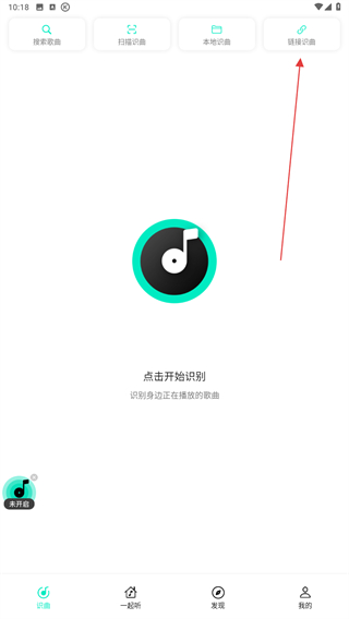1、打開q音探歌的APP,進入時點擊上方鏈接識曲。