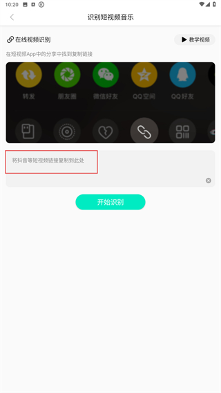 2、進入識別短視頻音樂的頁面內(nèi),在輸入框內(nèi)輸入鏈接。