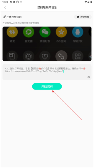 3、輸入鏈接后,再點擊下方開始識別的按鈕即可完成。