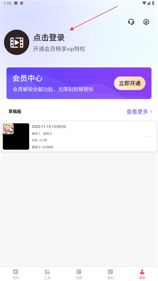 1、打開剪意視頻剪輯的應(yīng)用,進(jìn)入時(shí)點(diǎn)擊導(dǎo)航欄我的。