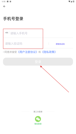 3、輸入手機(jī)號(hào)、驗(yàn)證碼后,點(diǎn)擊登錄的按鈕即可。
