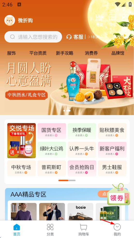 2、在微折購APP主界面,點擊右下角“我的”,進入個人頁面。