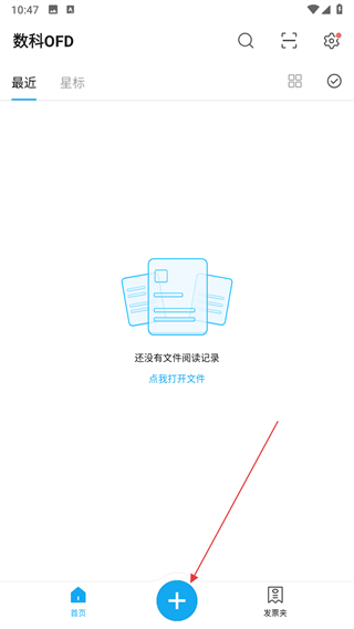 1、打開(kāi)數(shù)科閱讀器app,點(diǎn)擊底部的藍(lán)色+號(hào)按鈕。