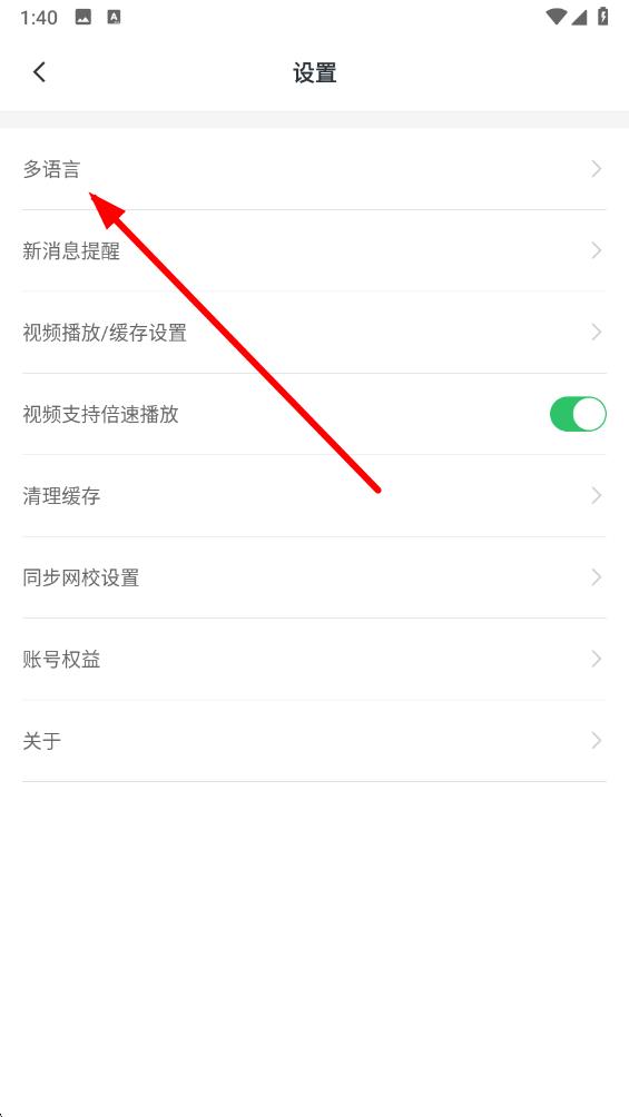 3、在設(shè)置頁(yè)面中,找到并點(diǎn)擊多語(yǔ)言選項(xiàng),進(jìn)入語(yǔ)言選擇界面。