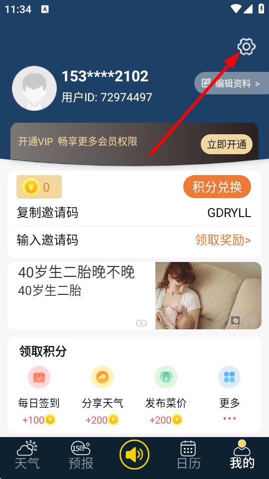 2、進入我的頁面后,點擊右上方的齒輪設置圖標。
